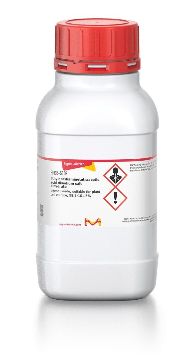 | Application【应用】 | 乙二胺四乙酸二钠盐二水合物用于植物物种的种子萌发试验以及从苔藓Physcomitrella paten中提取蛋白质。 还用于裂解和液泡缓冲液,用于从矮牵牛花瓣中分离液泡。 二价阳离子的螯合剂。抑制需要二价阳离子才能具有活性的酶,例如金属蛋白酶。 |