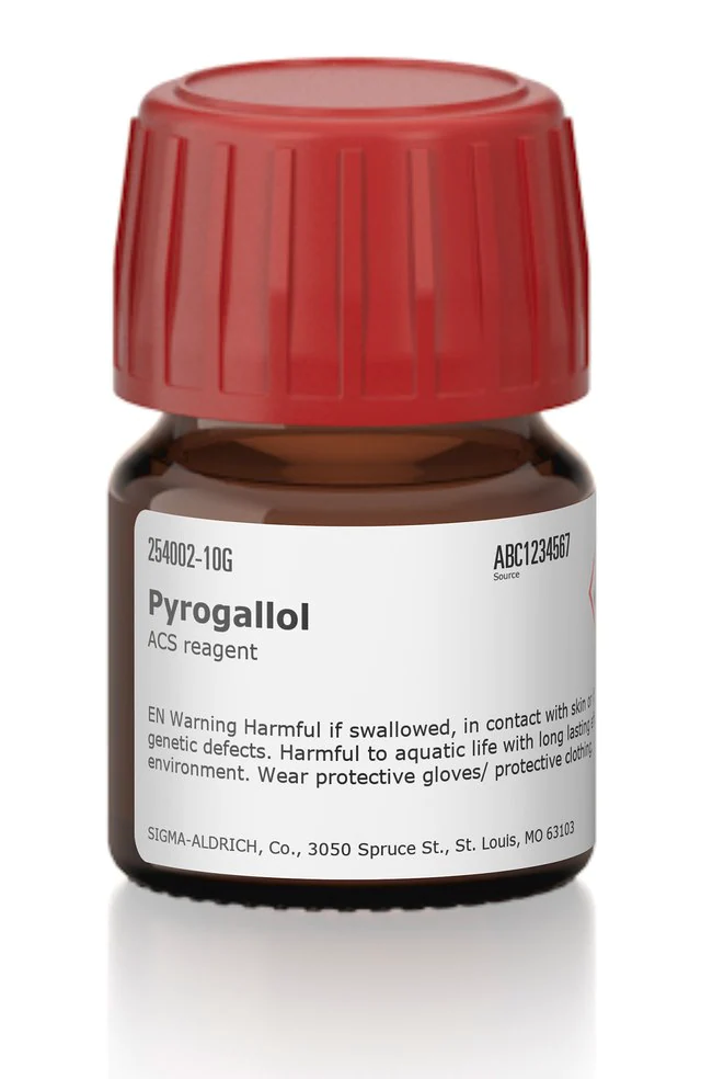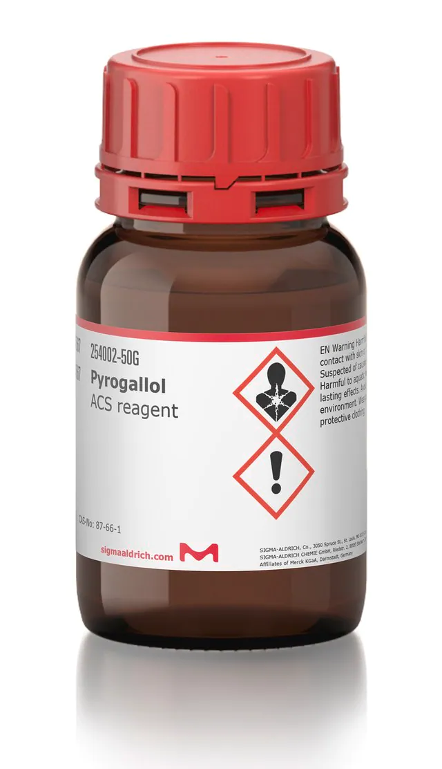 | Application【应用】 | 金属络合剂 邻苯三酚在碱性溶液中快速自氧化。由于这一属性,其碱性溶液通常用于从气体中去除氧气。邻苯三酚也可用于通过甲基化 制备邻苯三酚单甲醚,以及通过改良的 Nencki 反应制备没食子酸苯乙酮。 |