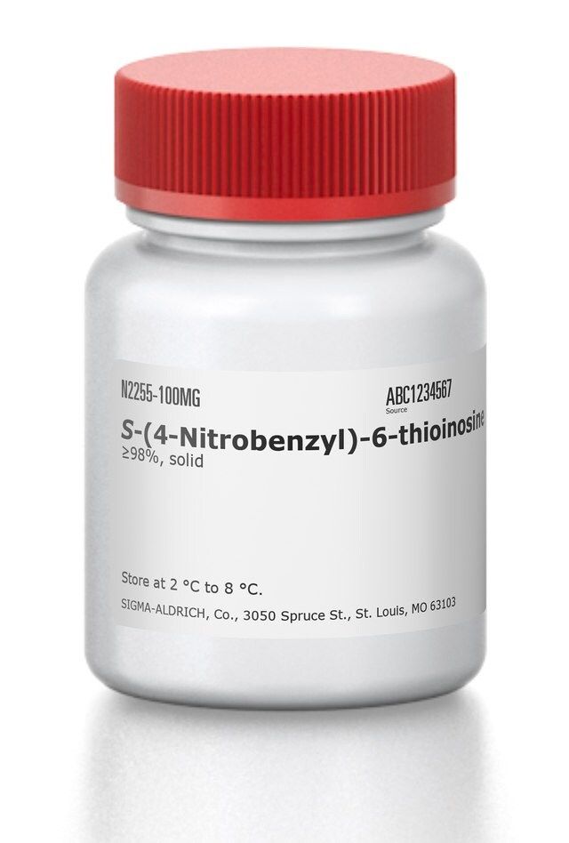 | General description【一般描述】 | S-(4-硝基苄基)-6-硫代肌苷(NBTI)属于S6取代的6-硫代嘌呤核苷家族,可调节动物体内的核苷转运机制。它能作为腺苷转运蛋白的一种配体。NBTI的结合位点位于脑毛细血管上。它可作为共价光亲和探针用于核苷转运。 |