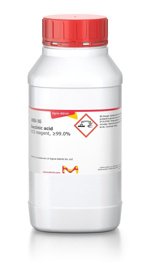 | General description【一般描述】 | 琥珀酸是一种有机酸,它作为重要的合成砌块,具有广泛的合成应用。目前,它是使用石油化合物进行合成的。由于其需求不断增加,已有许多生物合成方法被提出,作为有效的替代方案。已经研究了其作为不饱和聚酯树脂(UPR)中的低收缩添加剂(LSA)的用途。 |