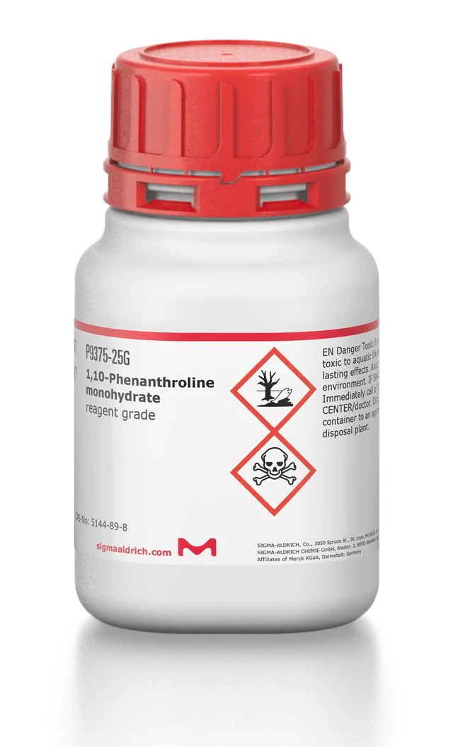 | General description【一般描述】 | 菲咯啉是一种杂环有机化合物,可与金属离子形成络合物。这些络合物在生物化学、催化和分析化学领域应用广泛。与铁络合,可作为氧化还原指示剂。 |
