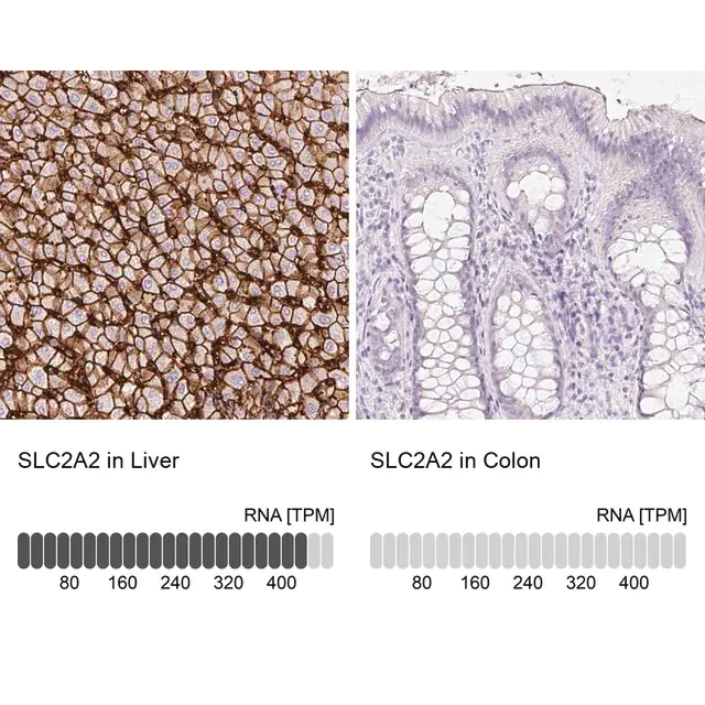 | Application【应用】 | Anti-SLC2A2 antibody produced in rabbit has been used in immunofluorescence (1:300) and immunohistochemistry (1:20). All Prestige Antibodies Powered by Atlas Antibodies are developed and validated by the Human Protein Atlas (HPA) project (www.proteinatlas.org)and as a result, are supported by the most extensive characterization in the industry. The Human Protein Atlas project can be subdivided into three efforts: Human Tissue Atlas, Cancer Atlas, and Human Cell Atlas. The antibodies that have been generated in support of the Tissue and Cancer Atlas projects have been tested by immunohistochemistry against hundreds of normal and disease tissues and through the recent efforts of the Human Cell Atlas project, many have been characterized by immunofluorescence to map the human proteome not only at the tissue level but now at the subcellular level. These images and the collection of this vast data set can be viewed on the Human Protein Atlas (HPA) site by clicking on the Image Gallery link. To view these protocols and other useful information about Prestige Antibodies and the HPA, visit sigma.com/prestige. |