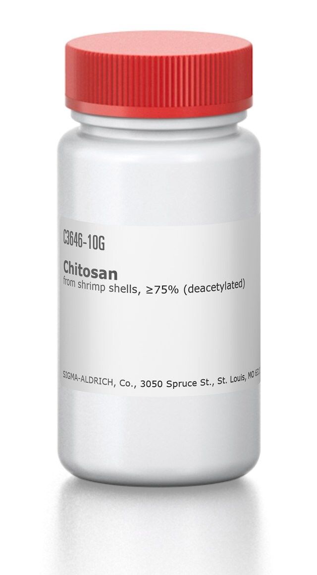 | Preparation Note【制备说明】 | 通过从虾(Pandalus borealis)壳中获得的几丁质,经过碱性脱乙酰化制备得到。在工业上,甲壳素是通过压碎虾壳,然后用酸将固体进行洗涤以除去无机和蛋白类物质而进行制造的。再通过强碱(如氢氧化钠)的处理,将纯化的几丁质脱乙酰化成壳聚糖。所得的壳聚糖可以通过在酸中溶解,然后中和和沉淀来进一步纯化。 |