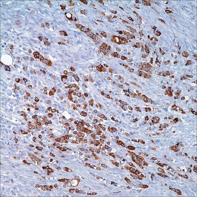 | General description【一般描述】 | Mammaglobin (10 kD) is a breast-associated glycoprotein distantly related to secretoglobin family that includes human uteroglobin and lipophilin. Mammaglobin mRNA is present in high levels in human breast cancer cell lines, which has been shown to be a sensitive marker of breast cancer. When combined with other breast-restricted markers such as GCDFP-15, an overall sensitivity for breast carcinoma of 84% has been achieved. Anti-Mammaglobin can also be used to determine breast origin in the setting of metastatic carcinoma. | ||||