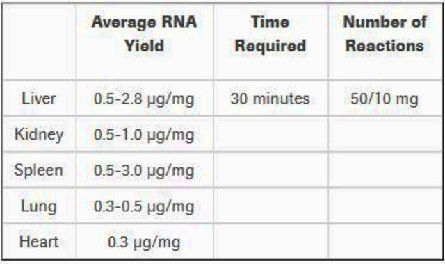 | Application【应用】 | The High Pure RNA Tissue Kit rapidly isolates total RNA from mammalian tissues such as mouse liver, spleen, lung, and heart. The isolated RNA can be used in many downstream applications: