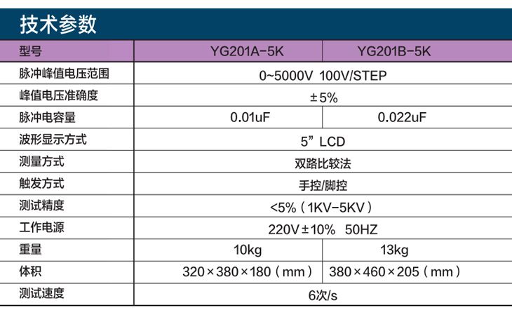 YG201系列匝间耐压测试仪采用“冲击波型比较法”,将具有规定峰值电压(一般是高于数倍的工作电压)加于被测线圈绕组上,通过比较两个震荡波形的差异。从而判断线圈匝间绝缘好坏,电晕放电,局部短路等各种故障均能直观的判断,两组被测线圈面积误差百分比显示,直观明了,避免了操作人员在观察波形时的人为误差,又能大大提高操作效率。