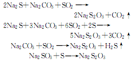 2、硫化碱法利用硫化碱蒸发残渣、硫化钡废水(含有:碳酸钠和硫化钠)配制成的原料液与二氧化硫反应,经澄清后加入硫黄粉进行加热反应,经蒸发、冷却结晶、洗涤、分离、筛选,制得硫代硫酸钠成品。其反应方程式如下: