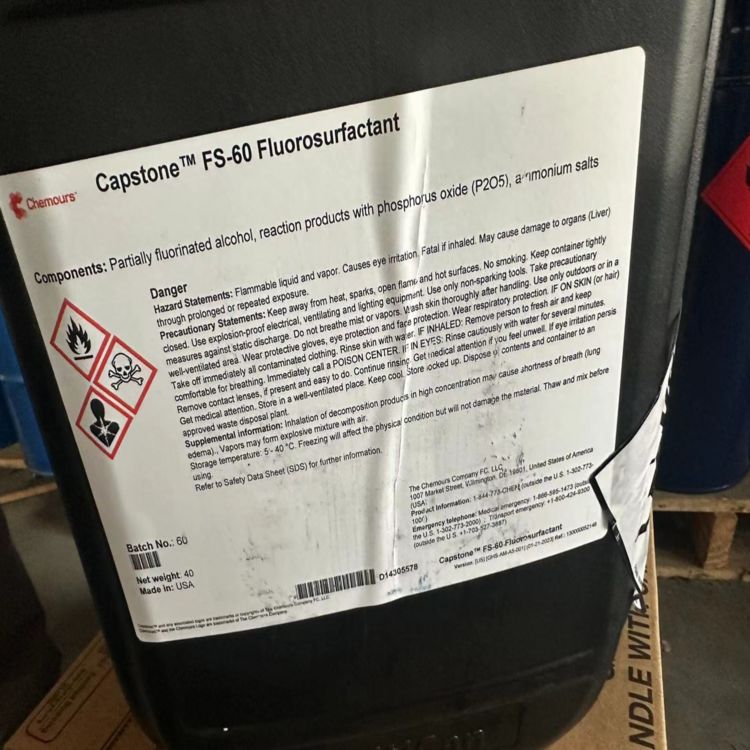 · Capstone® FS-60是水性阴离子表面活性剂,可在最低发泡的情况下提供优异的表面张力性能。