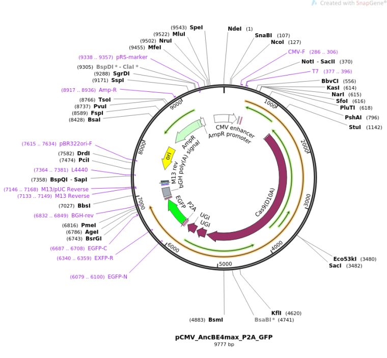质粒名称:pCMV_AncBE4max_P2A_GFP